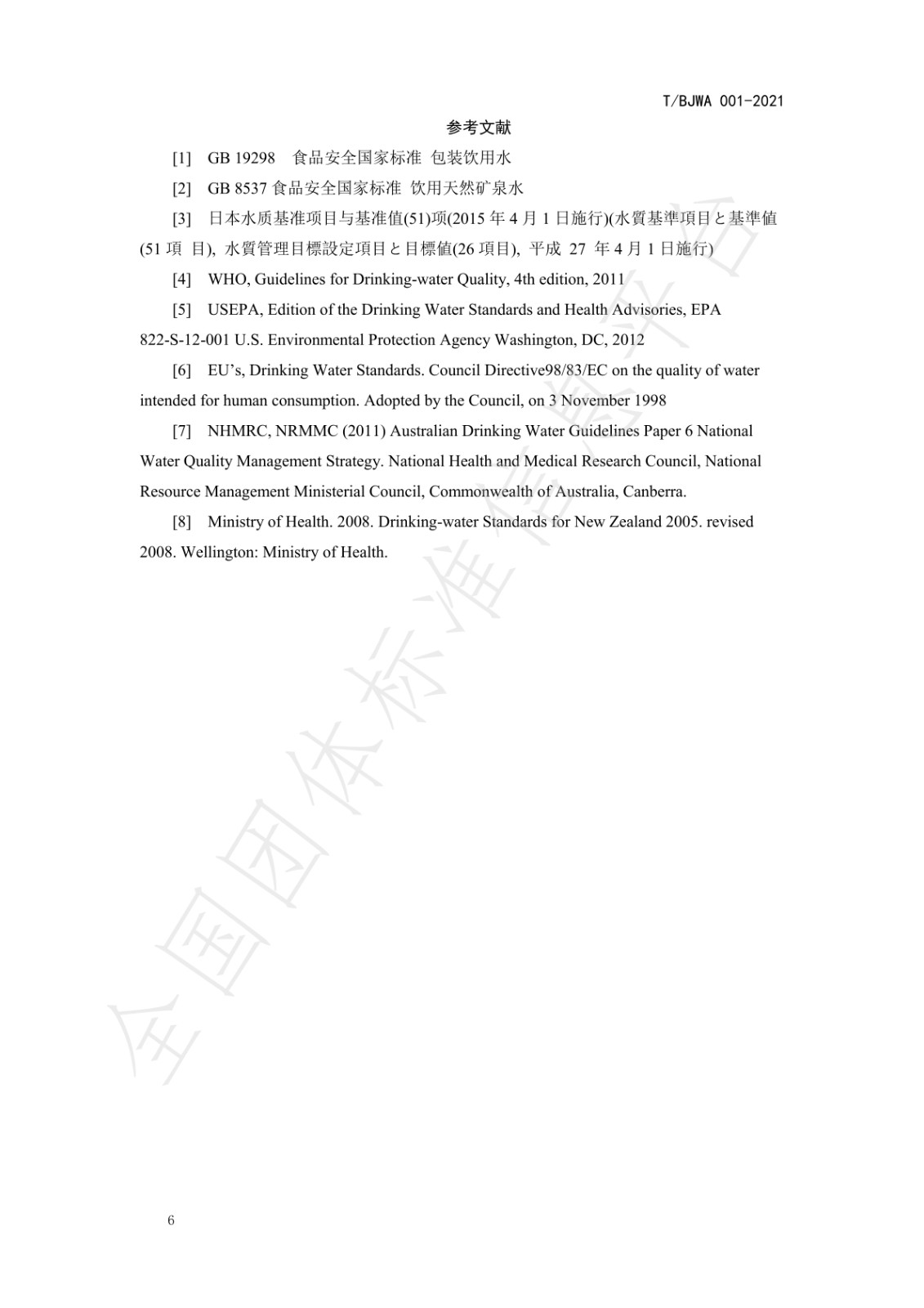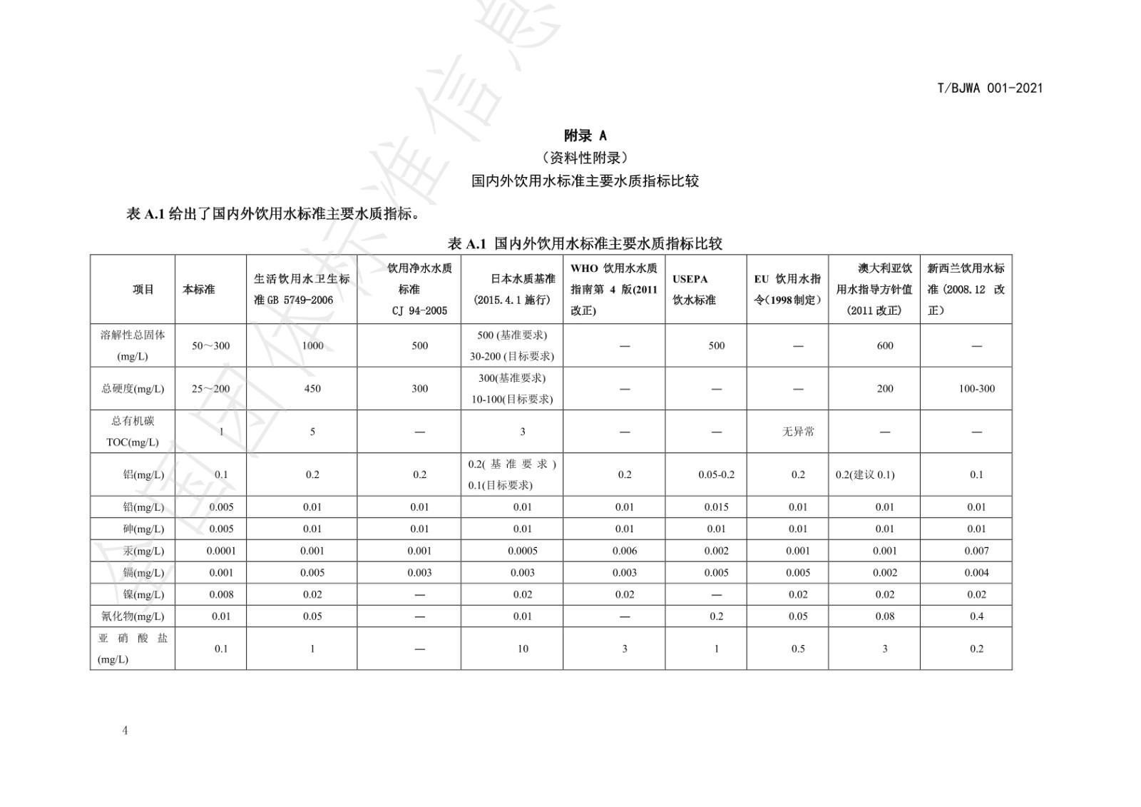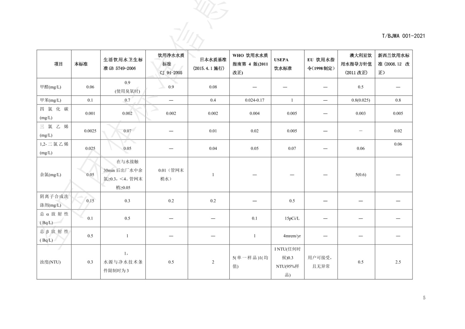 《健康直饮水水质标准》(T/BJWA 001-2021)